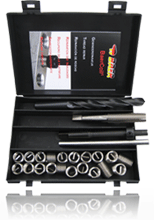 Reparationssats för renovering skadade gängor eller förstärkning i mjuka material som aluminium, gjutjärn. Satsen är kompatibel med andra på maknaden förekommande fabrikat till exempel Helicoil och Recoil. Insatsgängorna i satsen har längden 1,5 * diametern. Satsen innehåller Borr 3,2mm, gängverktyg, insatsgängor(M3-M8 20st, M9-M10 15st M12-M16 10st), Moch monteringsverktyg (M14 och M16 innehåller ej borr)