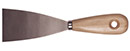 Stålspackel av stål med trähandtag samt hål i handtaget för upphängning.